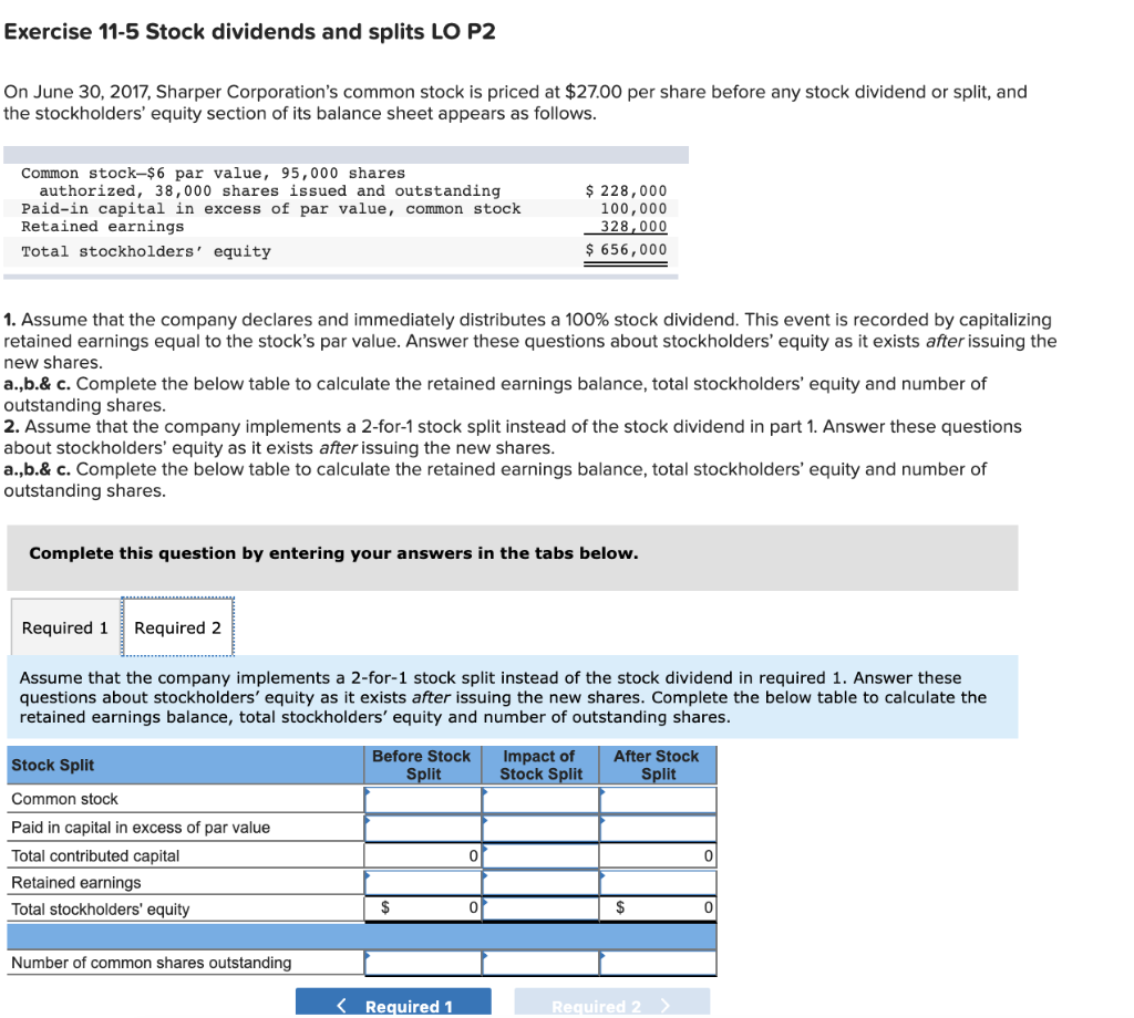 In a 2 for 1 stock split Barbara would allocate half of the basis of the old stock 100 to the new stock making her tax basis in the old and new stock 50 per share. On September 1 the board of directors of Colorado Outfitters Inc declares a stock dividend on its 24000 15 par common shares. On September 1 the board of directors of Colorado Outfitters Inc declares a stock dividend on its 16000 7 par common shares.