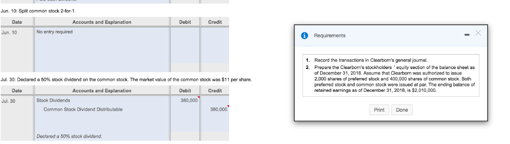 Issued the shares for the stock dividend. Record the necessary journal entries assuming a small 100 stock dividend. Lets assume the stock split on 2016-05-10 2 days before the pay date but 13 days after the record date.